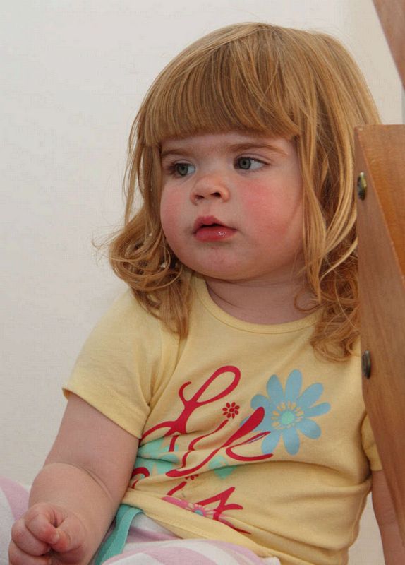Getting coins out of the jars (and occasionally back into them) and maybe doing interesting things with them is a favourite pastime. Here, someone has shown Maisie a 10p piece, with the lion on the reverse. Since lions roar, Maisie here is throughout, without success, looking for the lion. | |
